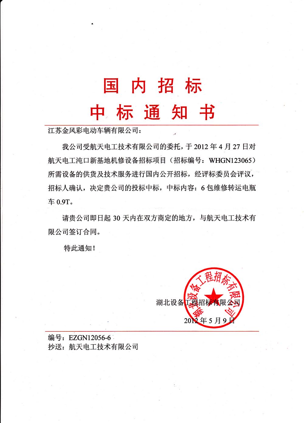 中标通知书 2012-5
